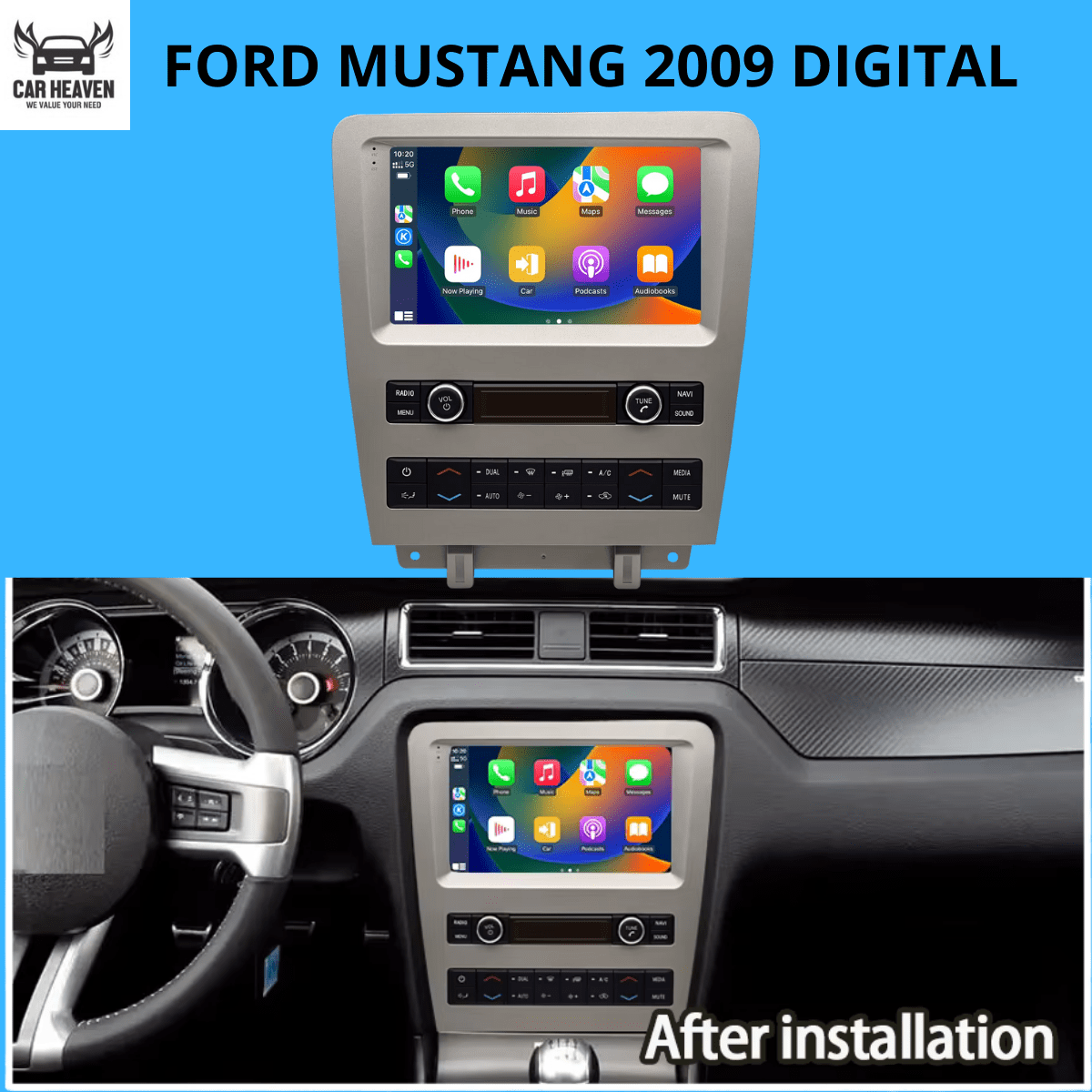 Upgrade your Ford Mustang (2005-2009) with a 9-inch touchscreen Android stereo featuring wireless Apple CarPlay & Android Auto, GPS navigation, Bluetooth, and a plug-and-play custom frame for a modern driving experience.